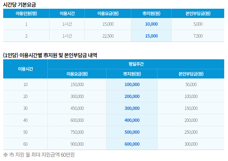 - 자녀 1인당 월 최대 60만원 지원